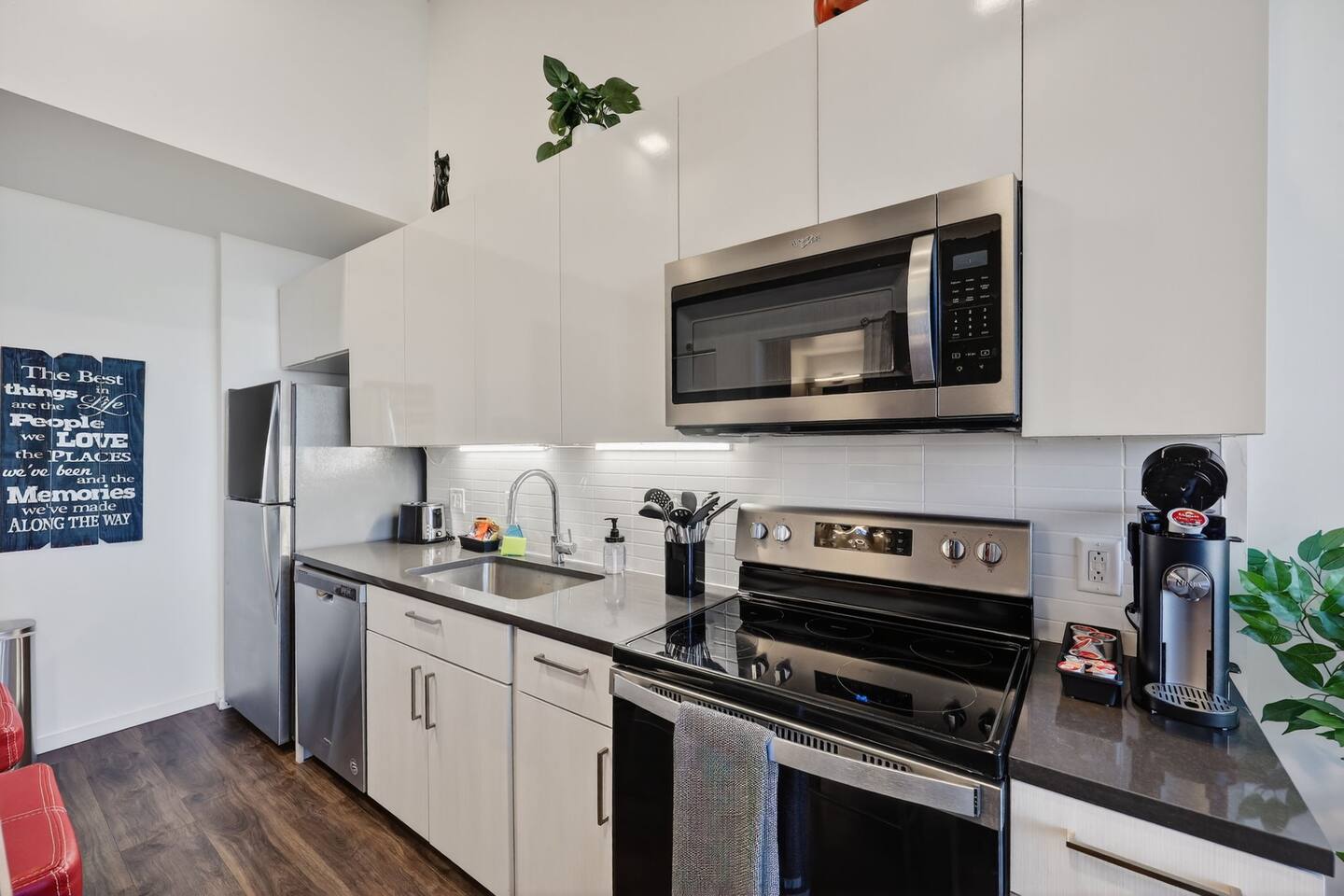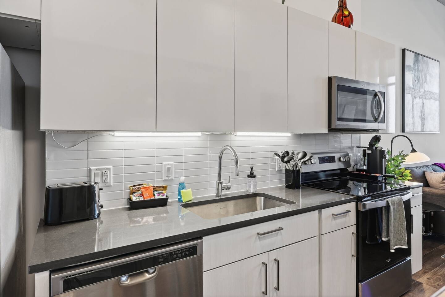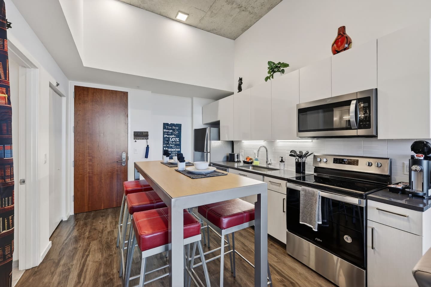 • Well-behaved dogs are welcome. As this is a pet-friendly building and neighborhood, you may encounter other dogs in elevators, common areas, and while out on neighborhood walks. For everyone’s comfort, we kindly ask that dogs remain leashed in shared spaces, are kept calm during quiet hours, and are not left unattended if they tend to bark. We appreciate guests cleaning up after their pets so shared spaces remain enjoyable for all.
